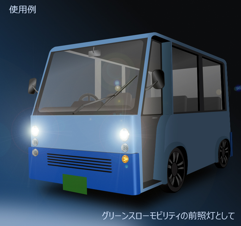 ●本商品は特定小型原動機付自転車、最高速度が20km/h 未満の自動車(グリーンスローモビリティ・小型/大型特殊自動車など)に前照灯としてご使用いただくことが可能です。