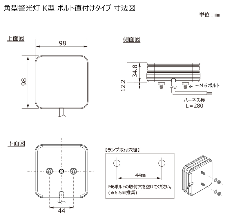 | 角型警光灯K型 ボルト直付けタイプ | LEDK10Y | DC12V~48V | 48V時:29W (48V・減光時:27W) | 16,800円 | 4961065 244005 | 重量:310g |